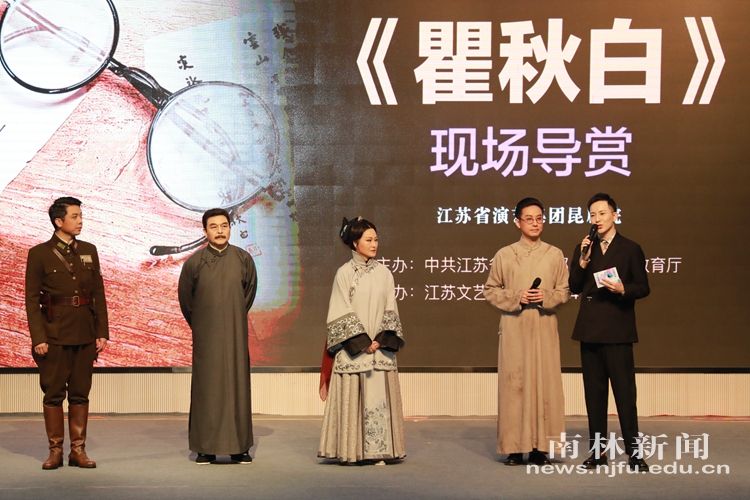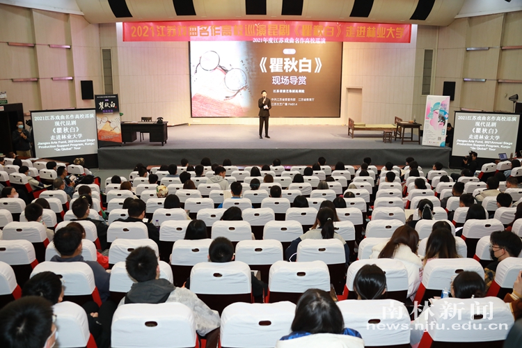 【南林新闻中心讯】11月17日晚,由中共江苏省委宣传部、省教育厅组织开展的“2021江苏戏曲名作高校巡演”活动在我校教五楼报告厅举行。活动由我校党委宣传部承办,江苏省演艺集团昆剧院原创革命题材昆剧《瞿秋白》来我校演出,200余名师生现场观演。