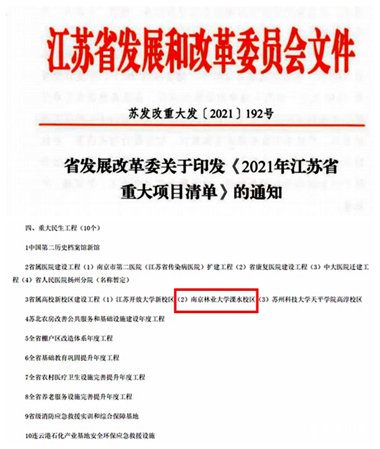【南林新闻中心讯】日前,省发改委公布了江苏2021年度省重大项目清单,南京林业大学溧水校区被列入重大民生工程类项目。