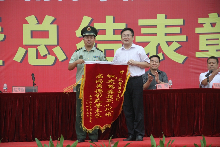 会议表彰了二〇一四级新生军训工作先进集体和先进个人。校军训工作组领导分别给军训优秀辅导员、新生军训优秀教官代表及新生军训先进个人代表颁发证书。