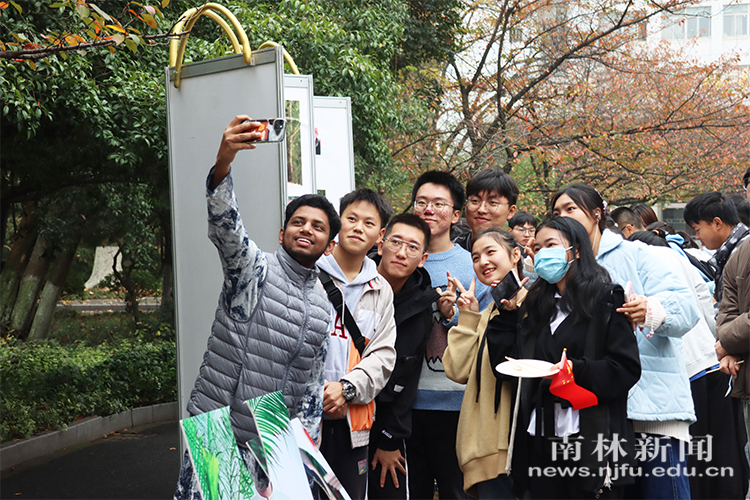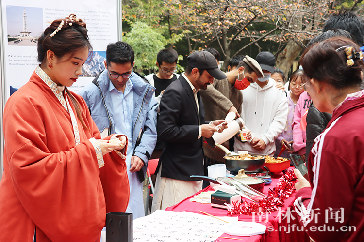 【南林新闻中心讯】“欢迎大家来尝尝我们的帕卡拉!”“来试一下纱丽克米兹吧!”……周日早晨的樱花大道热闹非凡,许多师生汇聚在此,参观浏览着一场有趣的展览。