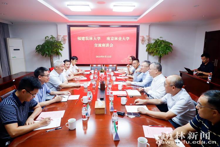 【南林新闻中心讯】9月12日下午,福建农林大学党委书记赖海榕一行来校调研交流。校党委书记赵茂程、校长勇强出席交流座谈会。两校相关职能部门负责人参加会议。