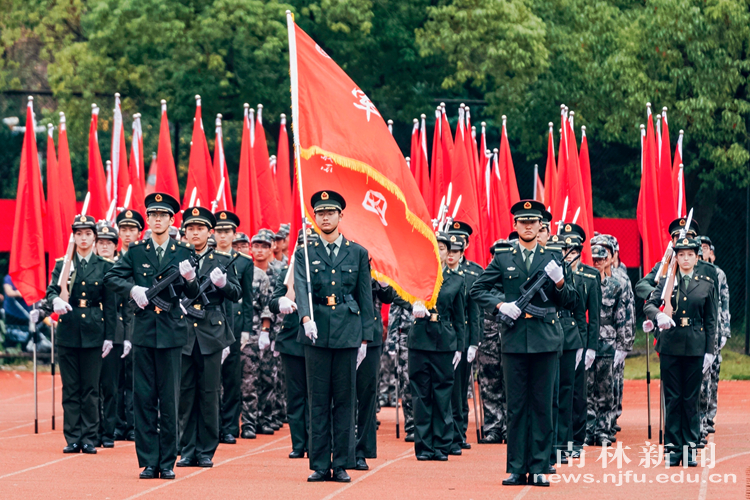 【南林新闻中心讯】9月28日,我校2025级本科生军训成果展示暨表彰大会分别在白马校区田径场和淮安校区田径场举行。副校长李维林、张晓琴,中国人民解放军32238部队大校政治委员鲍俊成、中校副主任陈燕平,武警淮安支队副支队长吕炎等出席会议,校军训工作领导小组成员以及淮安校区、白马校区军训团全体成员参加大会。