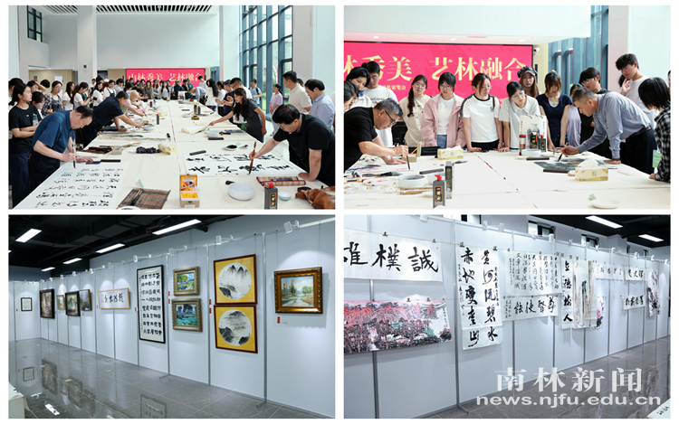 【南林新闻中心讯】翰墨颂华章,丹青绘山河。9月29日上午,我校在白马校区举办“山林秀美”迎国庆书画名家笔会与“艺林融合”教师创作展。校党委副书记缪子梅,校党委常委、党委宣传部、党委统战部部长董博,南京国家农高区党工委书记徒位国,中国书法家协会理事、江苏省书协副主席、江苏省书法院院长李啸等出席活动。白马校区、艺术设计学院相关负责人、教师创作展代表和学生代表齐聚一堂,共同以笔墨致敬时代,用艺术礼赞祖国。