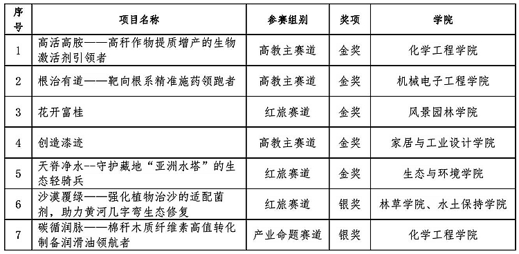 在本届大赛中,我校入围现场决赛的7个项目表现突出,凭借鲜明的创新特色、扎实的专业功底与出色的团队协作,最终5个项目荣获金奖。其中,3个项目荣获小组第一名,1个项目荣获小组第二名,充分展现了南林学子敢闯会创的青春风采。学校将持续深化创新创业教育改革,优化双创育人生态,着力培养更多面向未来、贡献国家的拔尖创新型人才,为实现高水平科技自立自强贡献更加坚实的南林力量。