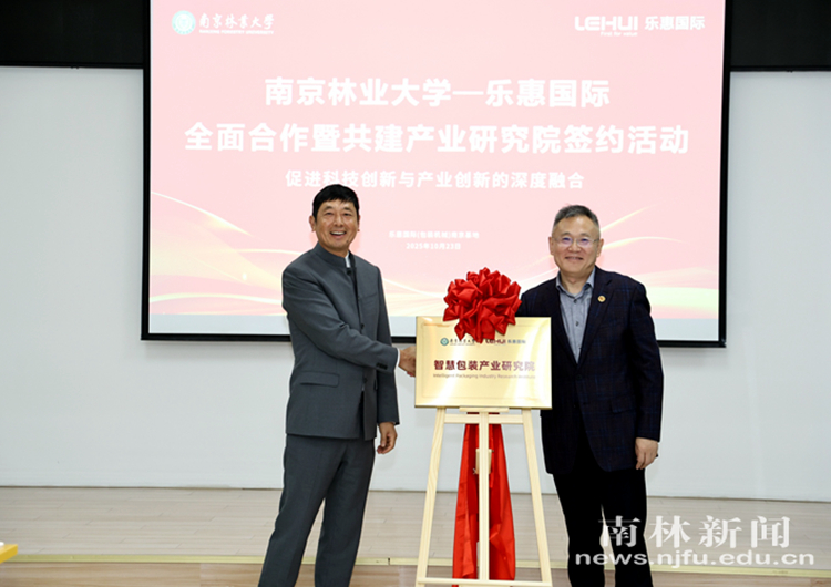 签约仪式上,我校与乐惠国际南京基地签署《校企全面合作协议》《产业研究院共建协议》,由双方共建的“智慧包装产业研究院”也在现场正式揭牌。此次合作标志着我校与乐惠国际南京基地正式建立战略伙伴关系,既是产学研用深度融合、服务新质生产力发展的具体行动,也是推动科技转化、产教融合赋能绿色低碳发展的有力探索。