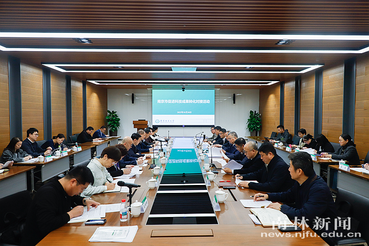 勇强代表学校对李佰平一行的到来表示热烈欢迎,并对南京市委市政府长期以来对学校发展的关心支持表示衷心感谢。他指出,党的二十届四中全会明确提出“加快高水平科技自立自强,引领发展新质生产力”的战略部署,南京市委专程来校开展科技成果转化对接,充分体现了对高校科技创新工作的高度重视,也为学校高质量发展注入了新动力。勇强表示,学校近年来以科技成果赋权改革为牵引,积极推动科技成果转化落地,服务领域从传统林业不断向绿色低碳、智能制造、生物质材料、生物医药等新兴方向拓展,一批代表性成果正加速在南京落地转化,有效融入区域创新体系,助力南京市高质量发展;学校将以此次对接为契机,进一步聚焦南京市“4266”产业体系,重点在生物质材料、智能制造、林源食品医药等领域深化布局,持续推动校地融合走深走实,为南京建设社会主义现代化典范城市贡献更多南林力量。