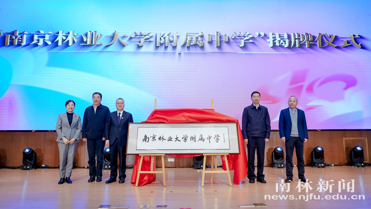 【南林新闻中心讯】为深入贯彻落实国家教育强国战略,深化人才培养模式改革,推动基础教育与高等教育有机衔接,我校与南京市玄武区政府依托南京市第十三中学锁金分校正式合作共建“南京林业大学附属中学”。11月15日,附属中学签约揭牌仪式暨南京市第十三中学锁金分校建校40周年发展大会在我校图书馆8B118报告厅举行。校长勇强,玄武区委书记闵一峰,南京市教育局二级巡视员周鹏,我校副校长张晓琴,玄武区常务副区长庄佳峰,玄武区教育局局长张恒柱,南京市第十三中学锁金分校党总支书记孙力、校长田莉等出席仪式。我校相关部门及单位负责人,十三中锁金分校校友及师生代表等400余人参加活动。