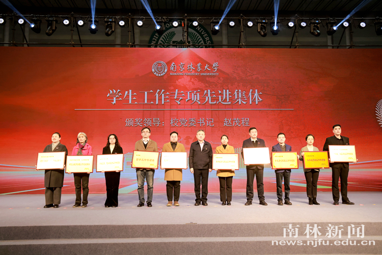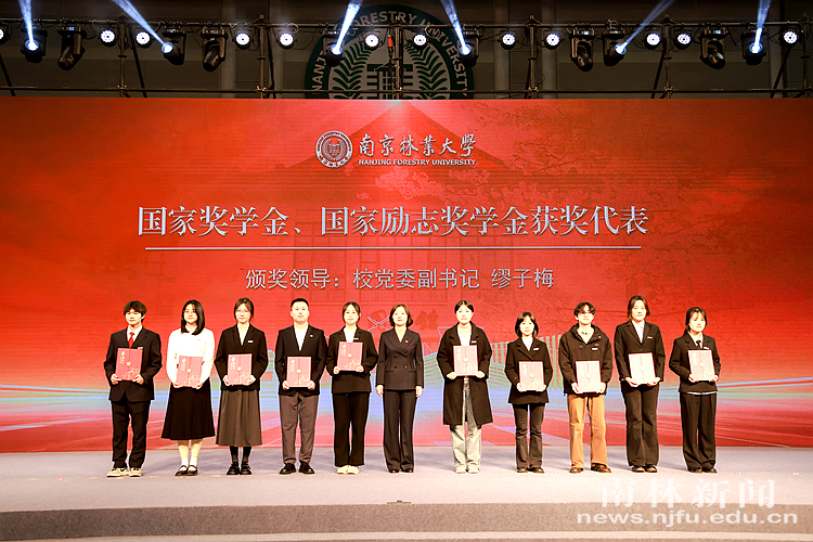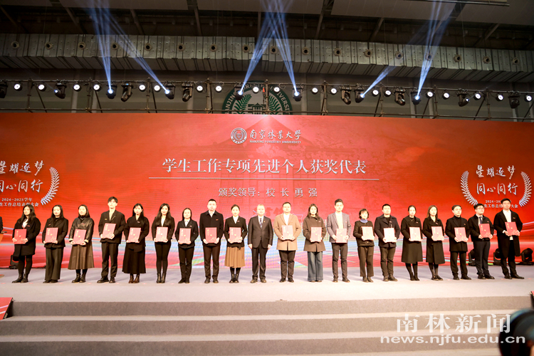 缪子梅宣读了《南京林业大学关于表彰2024—2025学年学生工作先进集体和先进个人的决定》《南京林业大学关于表彰2024—2025学年本科生先进集体、先进个人暨颁发各项奖学金的决定》《南京林业大学关于表彰2024—2025学年研究生先进集体、先进个人暨颁发各项奖学金的决定》《南京林业大学关于表彰2024—2025学年先进大学生党支部、优秀大学生共产党员和优秀大学生党务工作者的决定》《南京林业大学关于表彰2024—2025学年优秀来华留学生的决定》。学生工作先进集体获奖代表机械电子工程学院党委副书记、副院长李婕,2025年“瑞华杯”最美辅导员代表理学院团委书记、学工办主任顾荣华,校长特别奖一等奖学金获得者、化学工程学院博士研究生范德琪,卓越创新先锋团队代表、中国国际大学生创新大赛金奖项目负责人、家居与工业设计学院本科生侯江炎分别分享了他们在育人一线深耕不辍、在求学路上勇攀高峰、在创新赛场敢闯敢试的动人故事,引发全场共鸣。与会校领导及设奖单位嘉宾分别为受表彰的集体和个人颁发了获奖证书。