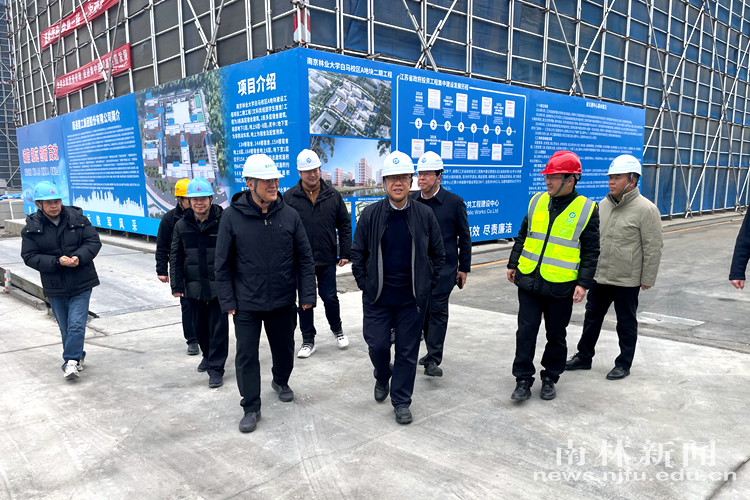 【南林新闻中心讯】1月27日下午,江苏省住房和城乡建设厅副厅长、机关党委书记张钧一行赴白马校区建设现场,实地调研白马校区A地块二期项目建设情况并召开现场座谈会。副校长、白马校区建设指挥部总指挥聂永江出席座谈会。省住建厅政府投资工程集中建设管理处处长陈曦,省公建中心党总支书记、董事高飞等陪同调研。