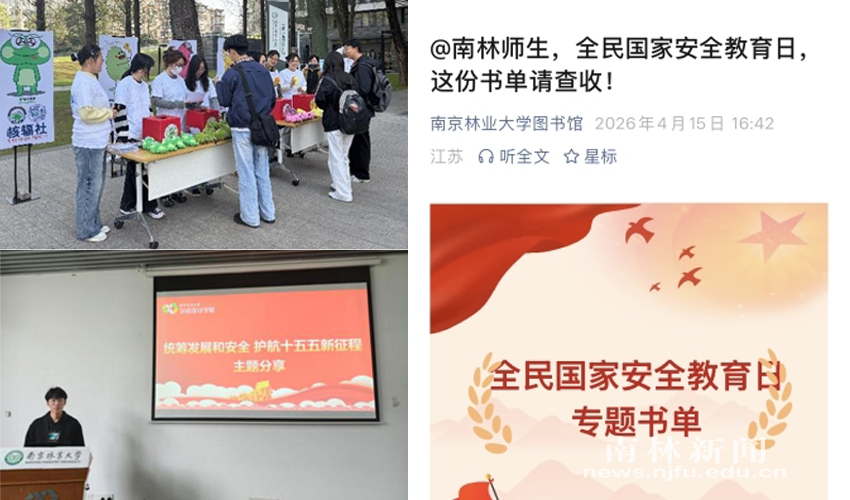 【南林新闻中心讯】4月15日是第十一个“全民国家安全教育日”,围绕“统筹发展和安全 护航‘十五五’新征程”的主题,我校组织开展系列宣传教育活动,以高水平安全保障高质量发展,为全面增强师生国家安全意识筑牢思想根基。