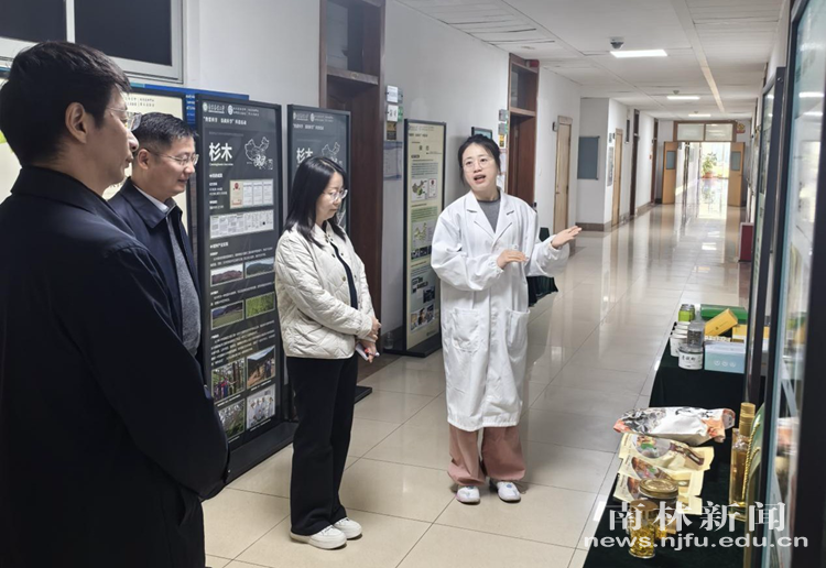 许慧娟一行参观了我校校史馆,深入了解学校的历史沿革、办学特色以及在人才培养、学科建设、科技创新、社会服务、文化传承创新和“双一流”建设等方面的情况;调研了林木遗传育种全国重点实验室,详细咨询学校关于用材林、经济林、生态林的林木良种选育与培育研究,特别是关于杨树、银杏、杉木、马尾松、青钱柳、蓝莓、薄壳山核桃等重要树种的种质创新及精深加工,并就专利布局、植物新品种权保护等问题与在场青年科研人员亲切交流。在我校林产化学与材料国际创新高地实验室,许慧娟认真听取实验室相关负责人的汇报,特别是木质素高值化转化、生物可降解包装材料、绿色胶黏剂等方面的最新研究进展,详细了解了多项核心知识产权的申请与许可情况。