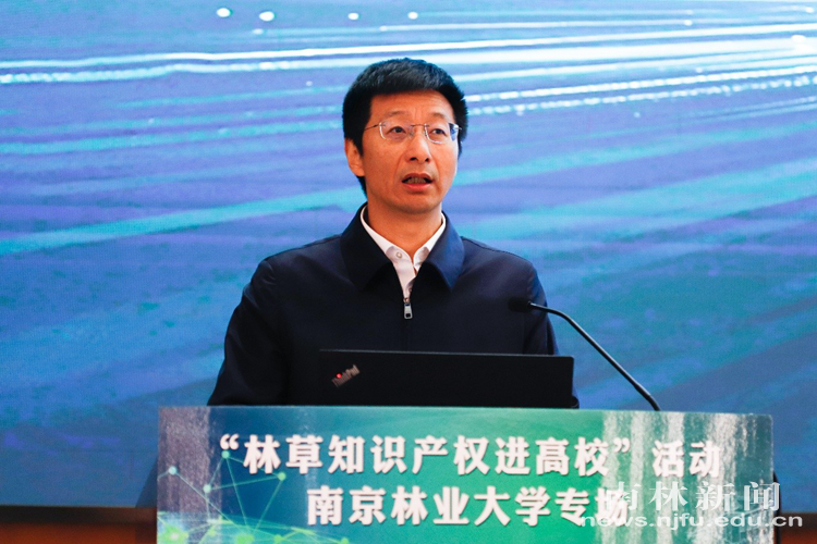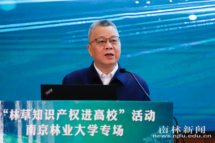 【南林新闻中心讯】4月24日上午,2026年“林草知识产权进高校” 南京林业大学专场活动在我校图书馆8B118报告厅举行。本次活动以“加强植物新品种保护 赋能林草新质生产力发展”为主题,由国家林业和草原局科技司、科技发展中心,江苏省林业局联合主办,南京林业大学、中国林科院林业科技信息研究所共同承办。国家林业和草原局科技发展中心副主任许慧娟,江苏省林业局党组成员、副局长王学东,我校校长勇强,副校长唐金辉出席启动仪式。国家林业和草原局科技发展中心新品处、中国林业科学研究院林业科技信息研究所、江苏省林业局行政审批与科技产业处负责人,我校科技处、林草学院、水土保持学院、风景园林学院、生态与环境学院、生命科学学院等单位负责人及师生代表300余人参加活动。