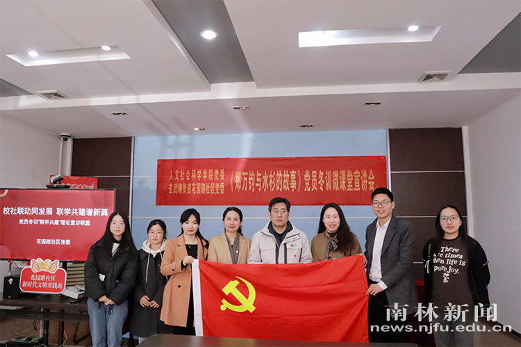 交流会上,卫欣和周文琴分别就党委发展概况和党建经验特色进行交流,双方在党建共建领域达成一致意见并签订党建共建协议书。卫欣表示,为讲好南林故事和弘扬南林精神,人文院党委将引领师生积极贡献智慧、勇担使命,以《郑万钧与水杉故事》宣讲为试点项目,未来将围绕“三树一竹”“南林名师”等主题探索研发系列“小而美”的主题宣讲精品项目。人文院社会工作学生党支部党员樊思雨同学作《郑万钧与水杉故事》宣讲,以生动的语言讲述了郑万钧先生与水杉发现的故事,向参会社区党员解读南林“水杉精神”的内涵。秉承“党建引领,团建赋能”的思路,王瑾与社区共青团负责人共同签订青年就业创业实习基地协议。人文院社会工作学生党支部和院青年志愿者协会分别被纳入本次校社党建共建和团团共建的重要参与主体。花园路社区党委结合党员冬训工作开展“小而美”的金句我来讲主题活动。玄武湖街道党工委相关领导对本次水杉精神宣讲和党建经验交流给予高度认可,支持和鼓励双方校社共建联动持续走深走实。