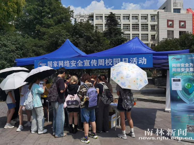 【南林新闻中心讯】9月9日至9月15日是我国第十一个国家网络安全宣传周。在宣传周期间,我校紧扣“网络安全为人民,网络安全靠人民”主题,将网络安全作为开学季安全教育重点内容,通过发放宣传材料、悬挂条幅、利用LED 屏等方式,积极营造宣传氛围,坚持线上与线下相结合,在全校范围内开展了形式多样、主题鲜明的系列宣传教育活动。